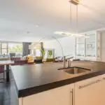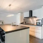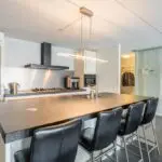 Bij ruime woonkamer aangekomen met grote open keuken met kookeiland (72m2).