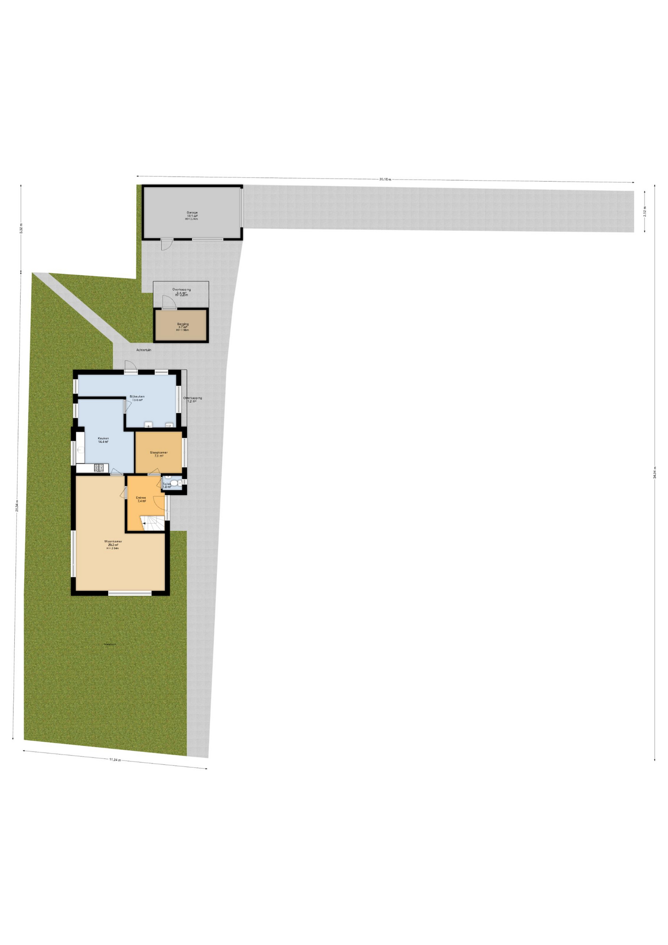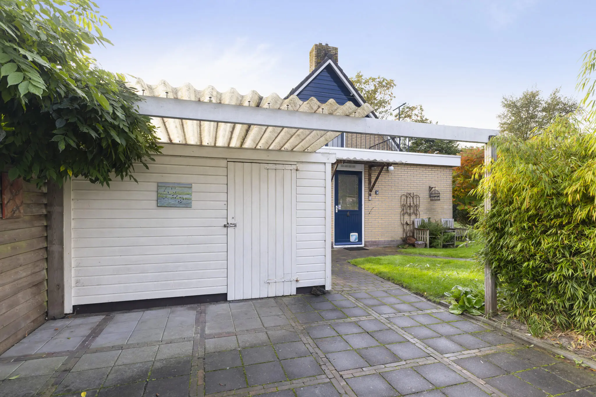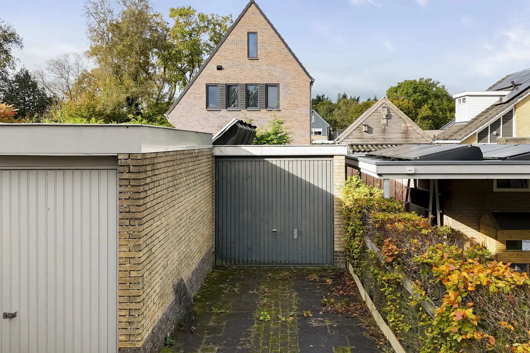 – Vrijstaande garage en houten berging