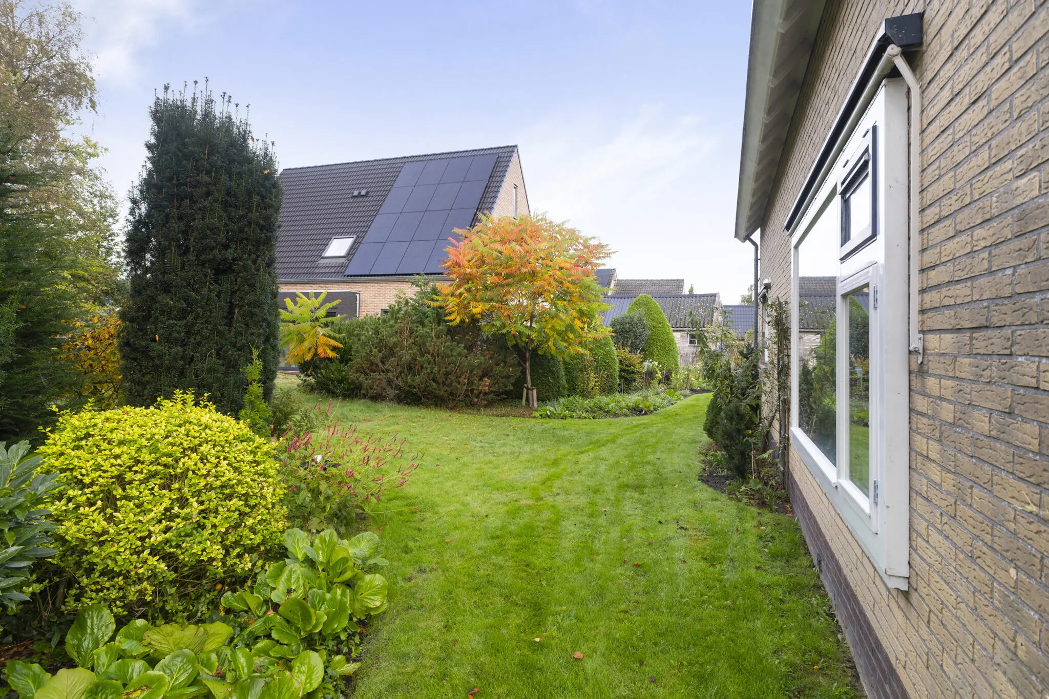 De woning beschikt over een groene, beschutte tuin die veel privacy biedt. Rondom de woning is volop ruimte om van de zon te genieten.