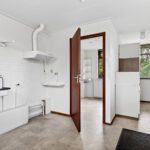 Bij binnenkomst treft u een ruime hal met toilet en toegang tot de slaap/werkkamer op de begane grond. De lichte, L-vormige woonkamer biedt uitzicht op de tuin en grenst aan de dichte keuken, die kan worden opengemaakt voor een open woonkeuken. De ruime bijkeuken biedt volop bergruimte én de mogelijkheid om een badkamer te realiseren, waarmee een levensloopbestendig wonen op de begane grond mogelijk is. Buiten bevinden zich een vrijstaande houten berging en een ruime garage, bereikbaar via de oprit aan de Fockema Andrealaan.
