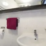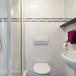 Vier slaapkamers, badkamer met een douche, een toilet en een wastafel.