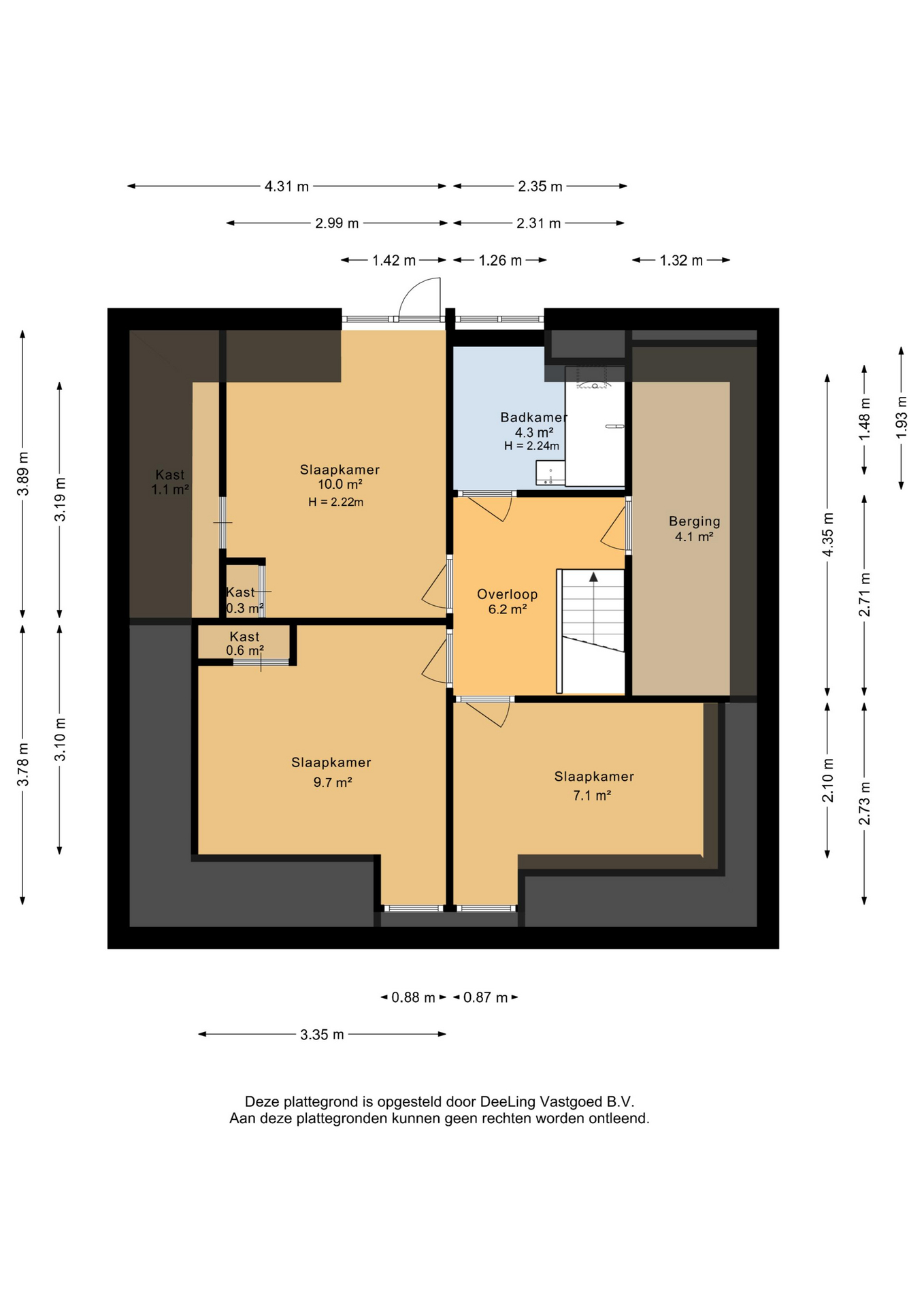 Op de verdieping zijn drie royale slaapkamers, de badkamer en een grote berging.