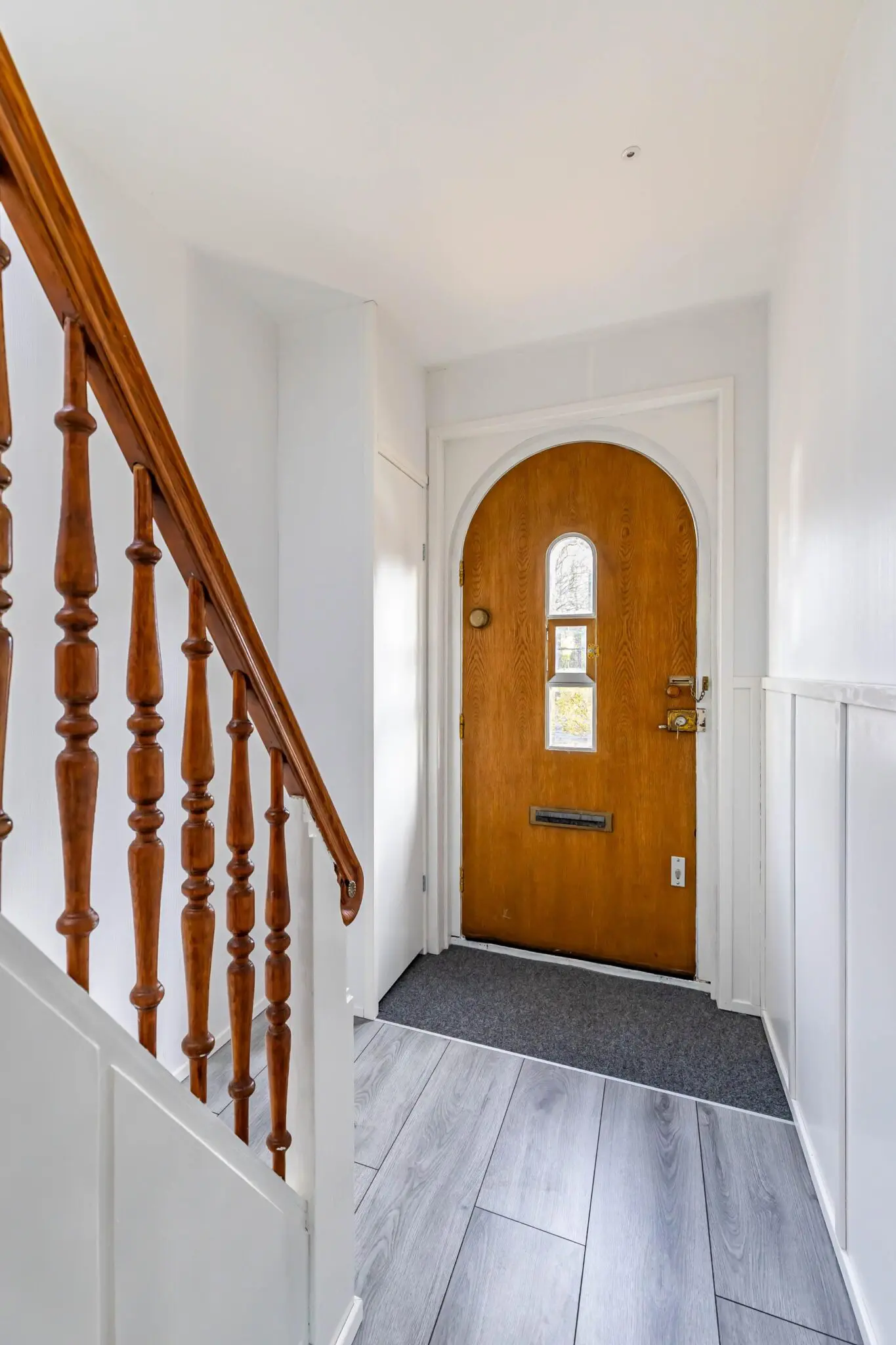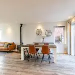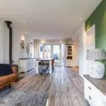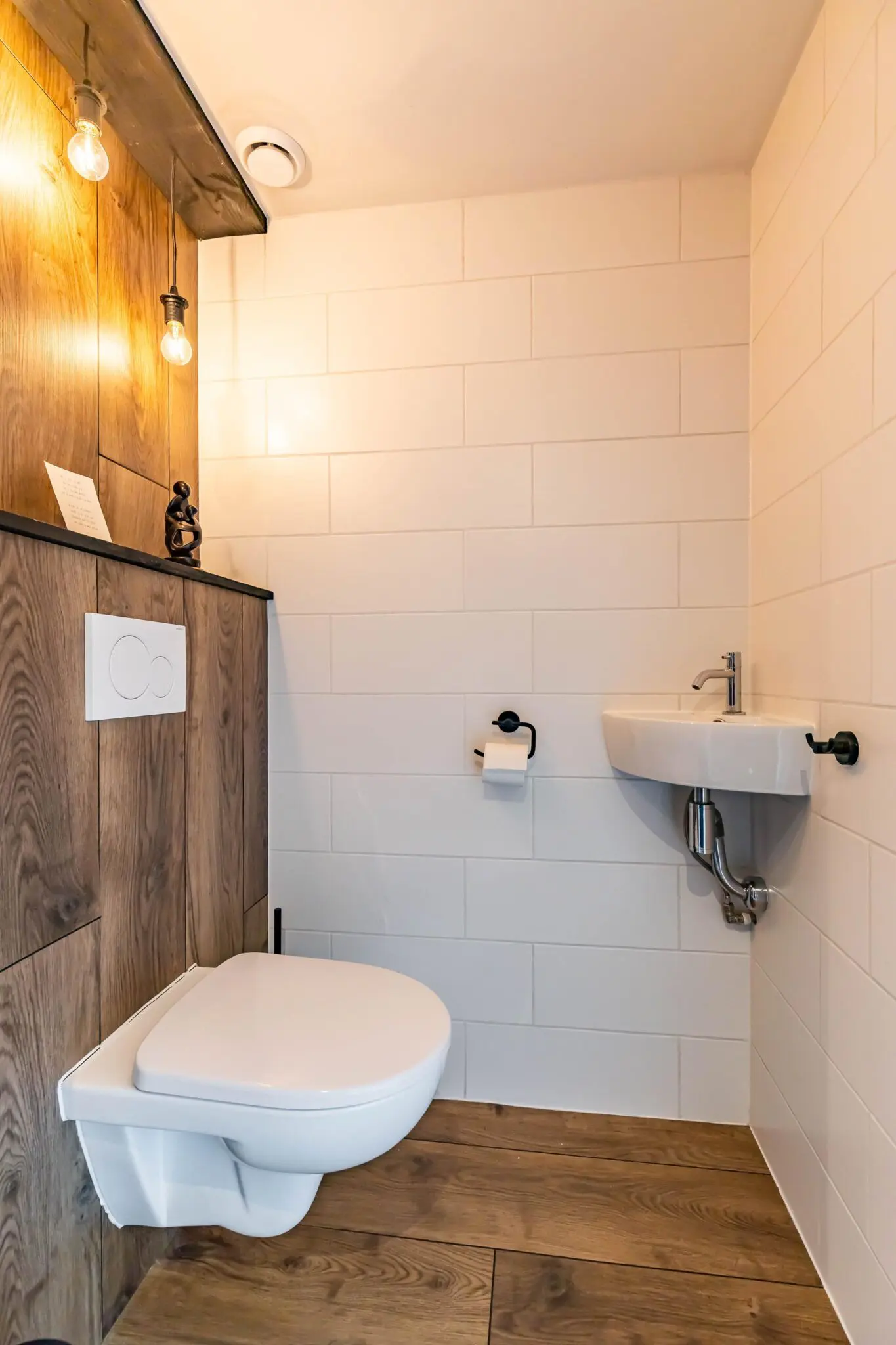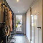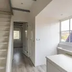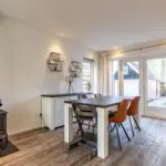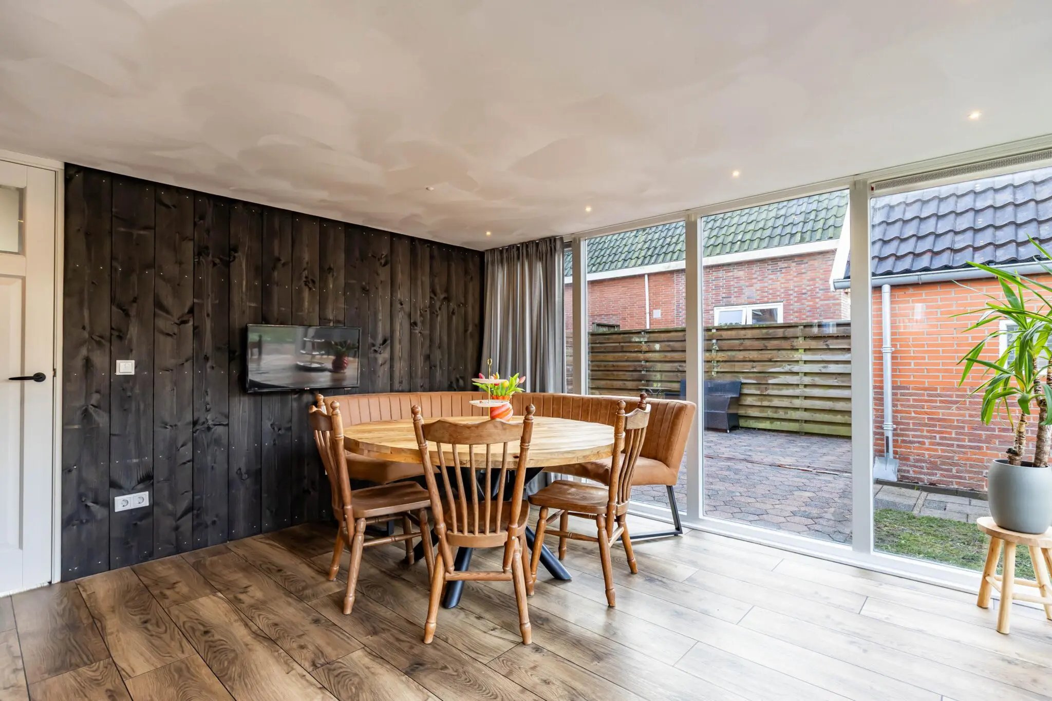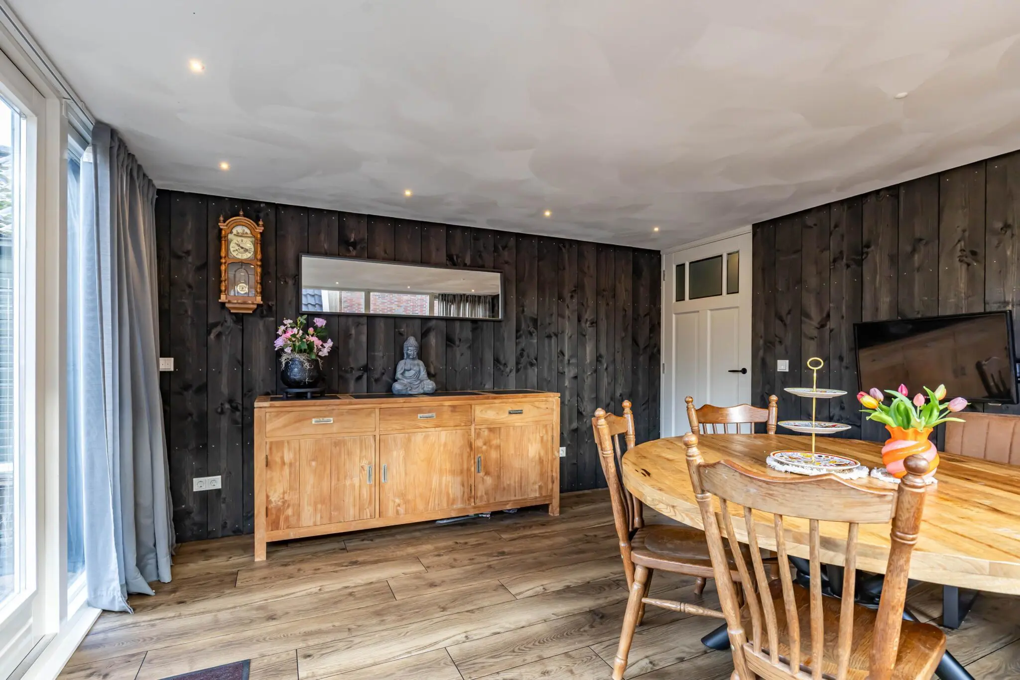 Via de entree komt u in de hal met trapopgang naar de eerste verdieping. Vanuit de hal bereikt u de sfeervolle woonkamer met eethoek en halfopen keuken. Aansluitend bevindt zich de bijkeuken met ruimte voor wasmachine en droger, netjes weggewerkt achter een schuifdeur.