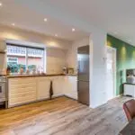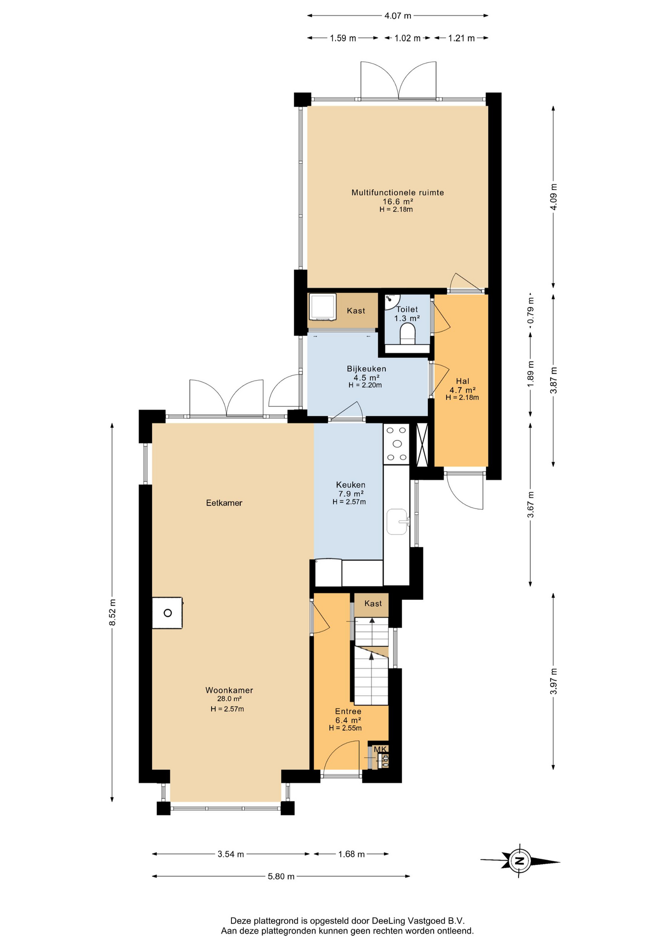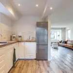 In de bijkeuken zijn reeds voorbereidingen getroffen (leidingwerk) voor het realiseren van een douchehoek. Daarnaast is er de mogelijkheid om de achtergelegen ruimte te transformeren tot een slaapkamer, waardoor gelijkvloers wonen mogelijk wordt. Uiteraard kan deze ruimte ook uitstekend dienen als extra woonkamer, kantoor of speelkamer.