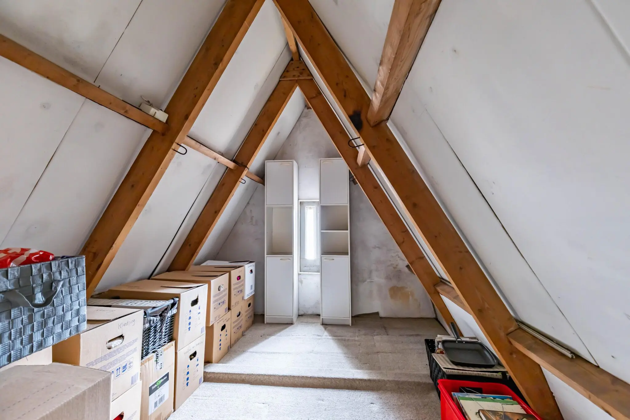 Via een vaste trap bereikt u de ruime zolderverdieping, ideaal als bergzolder met extra gebruiksmogelijkheden.