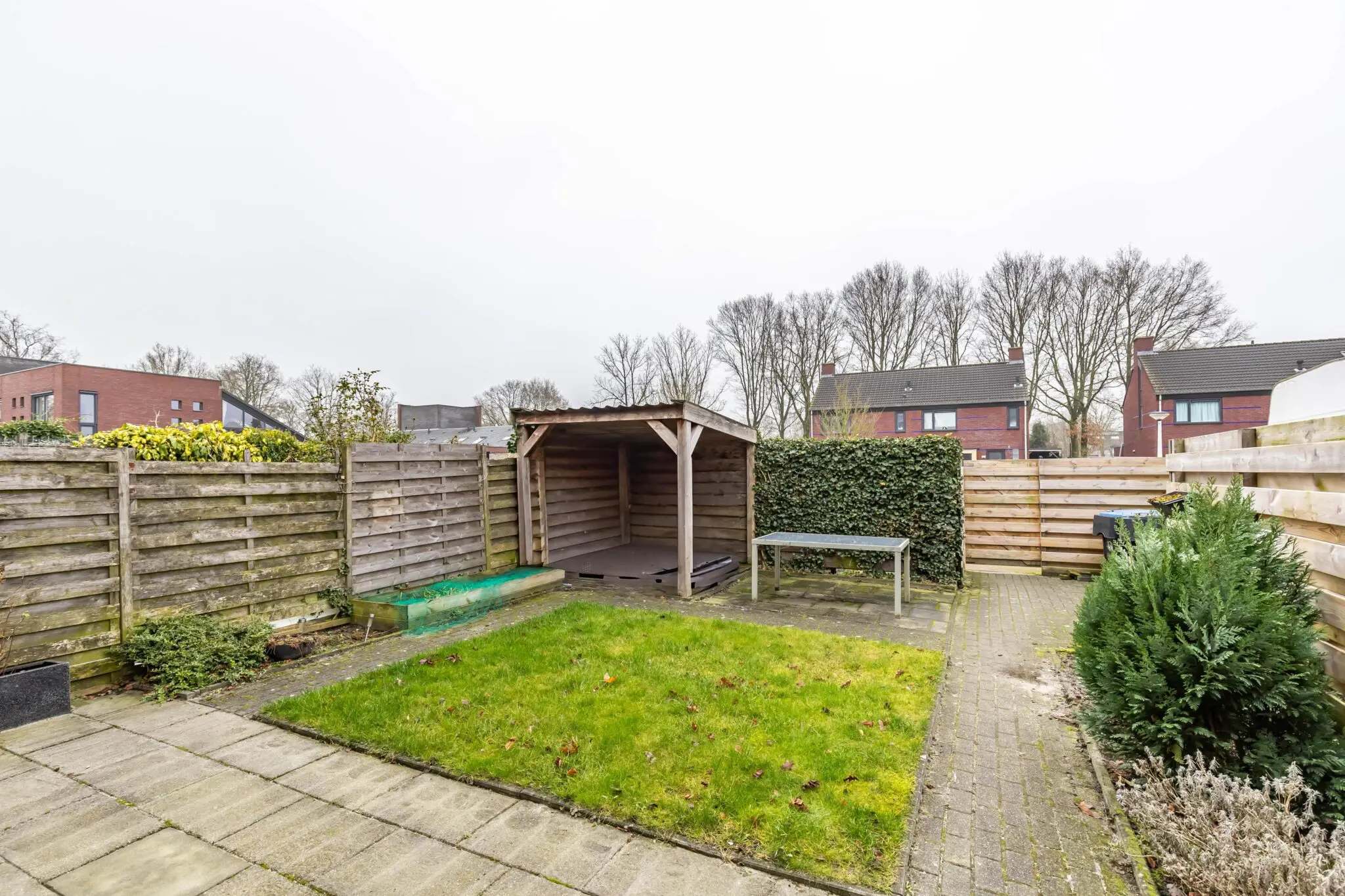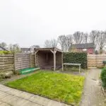 De grote voortuin op het westen is ideaal om te genieten van de avondzon. De gezellige tuin aan de achterzijde heeft een mooi terras en een overkapping, perfect voor ontspannen momenten buiten en er een een grote opbergruimte aanwezig aan voorzijde.