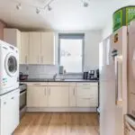 Deze verdieping wordt momenteel gebruikt als een praktijkruimte. De ruimte is licht, ruim en biedt toegang tot de achtertuin. Er is een keukenblok aanwezig, evenals veel vaste kastruimte en een toilet ook een mogelijkheid om dit op te toveren tot een extra woonkamer of iets dergelijks.