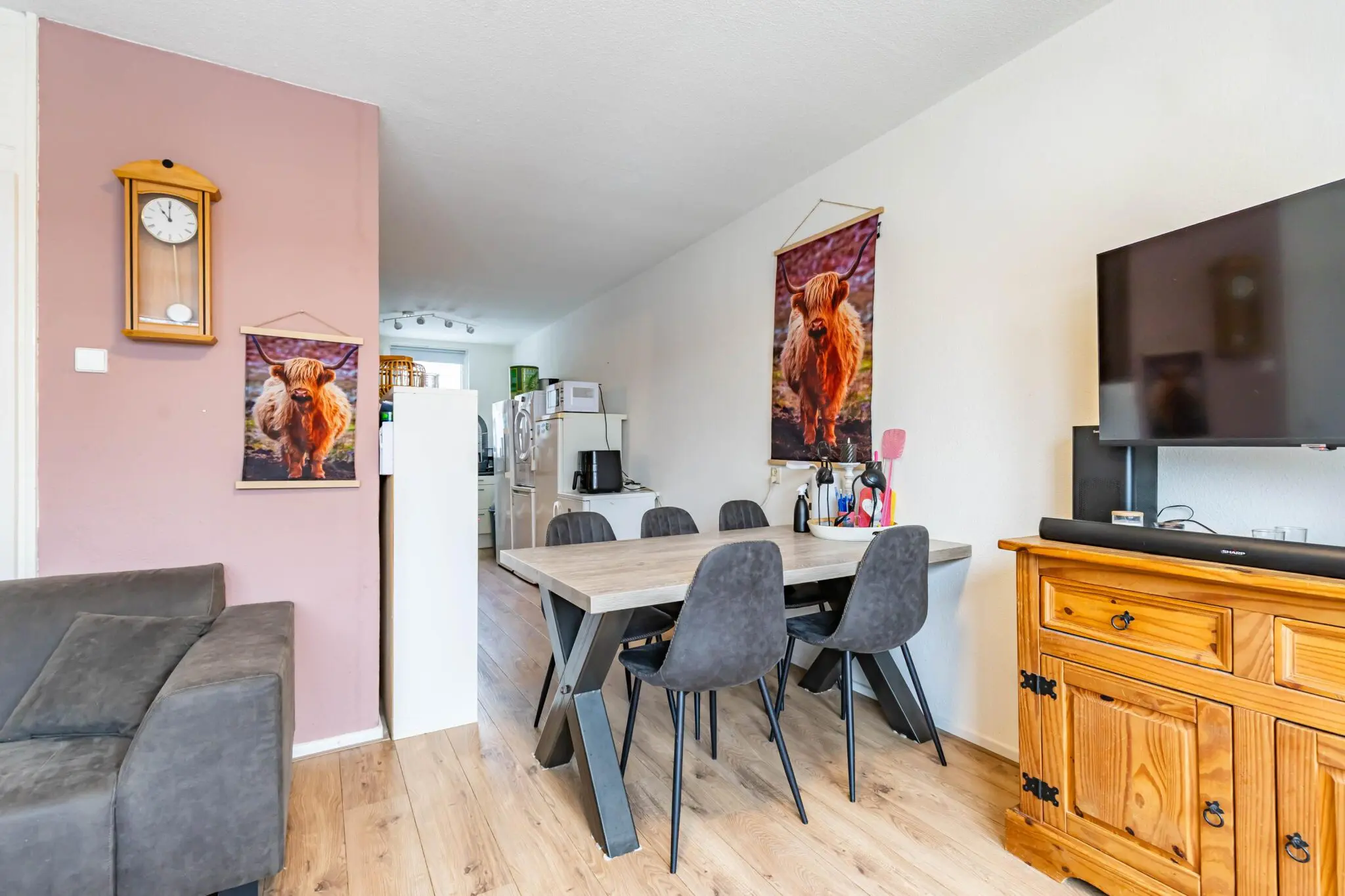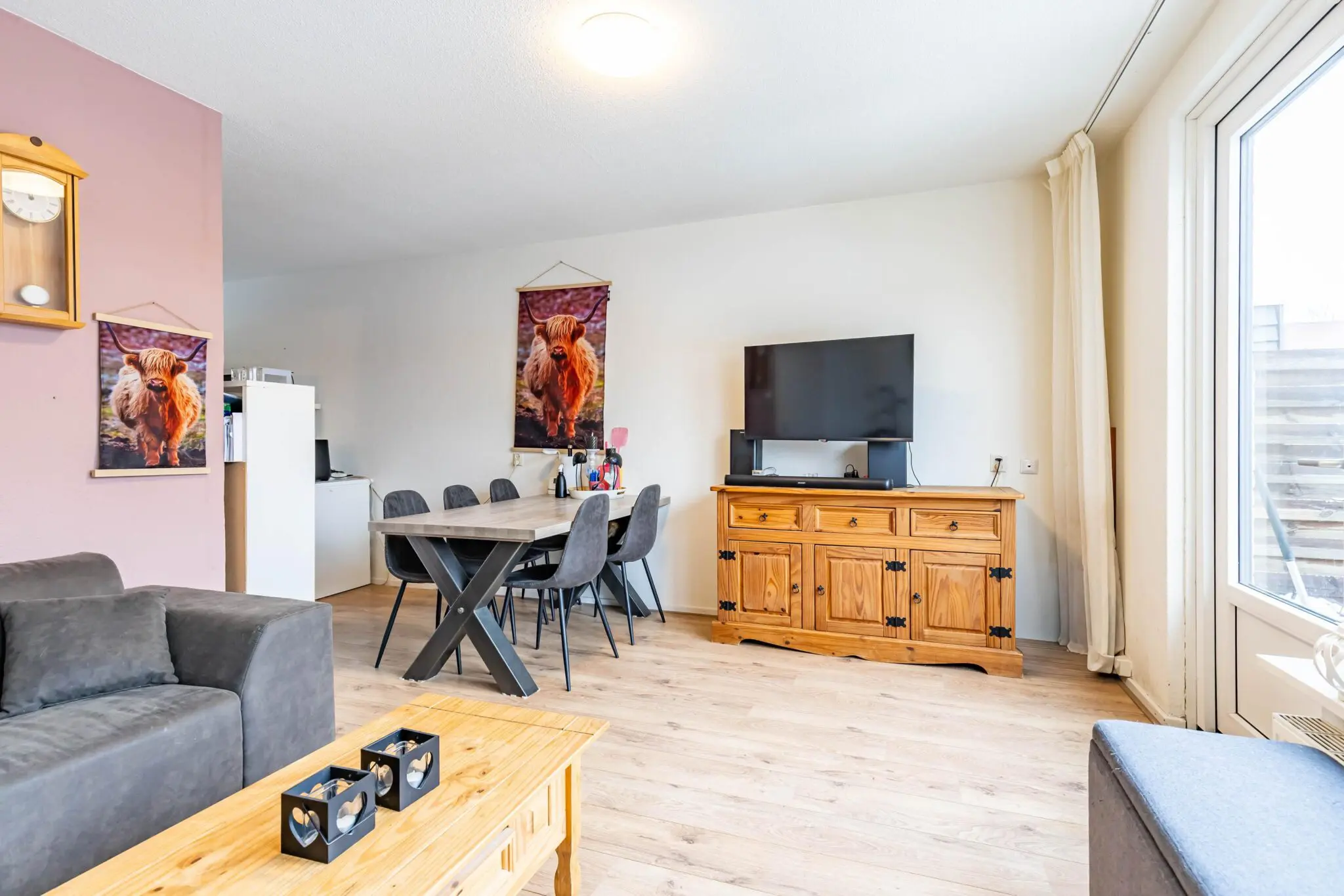 Deze zeer ruime leefverdiepbied heeft een lichte woonkamer en een open keuken. De keuken, geplaatst in 2020, is compleet uitgerust met een zespits fornuis met een afzuigkap, een vaatwasser, een koel-vriescombinatie en veel kastruimte. Tevens op deze verdieping een airco (2024) aanwezig.